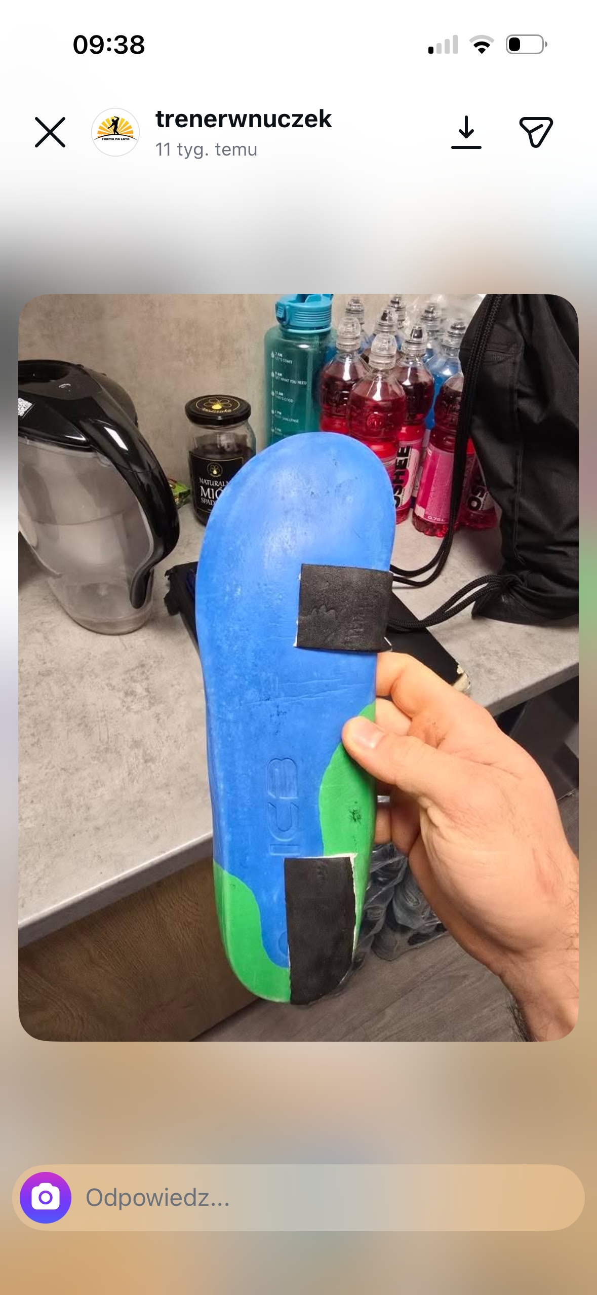Wkładka, którą Kamil stosował wcześniej, była modyfikowana głównie po stronie prawej stopy. Z relacji: